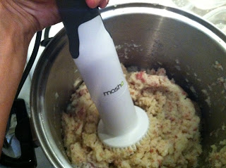 Using the Masha in an up and down motion, mash the cauliflower mixture until well blended. Add additional chicken broth if it’s too dry. Add salt and pepper to taste and serve.