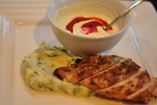 - Slice up your chicken (I like to soak the slices in the juices a minute to keep it super tender!) and add to your plate of zesty mash.